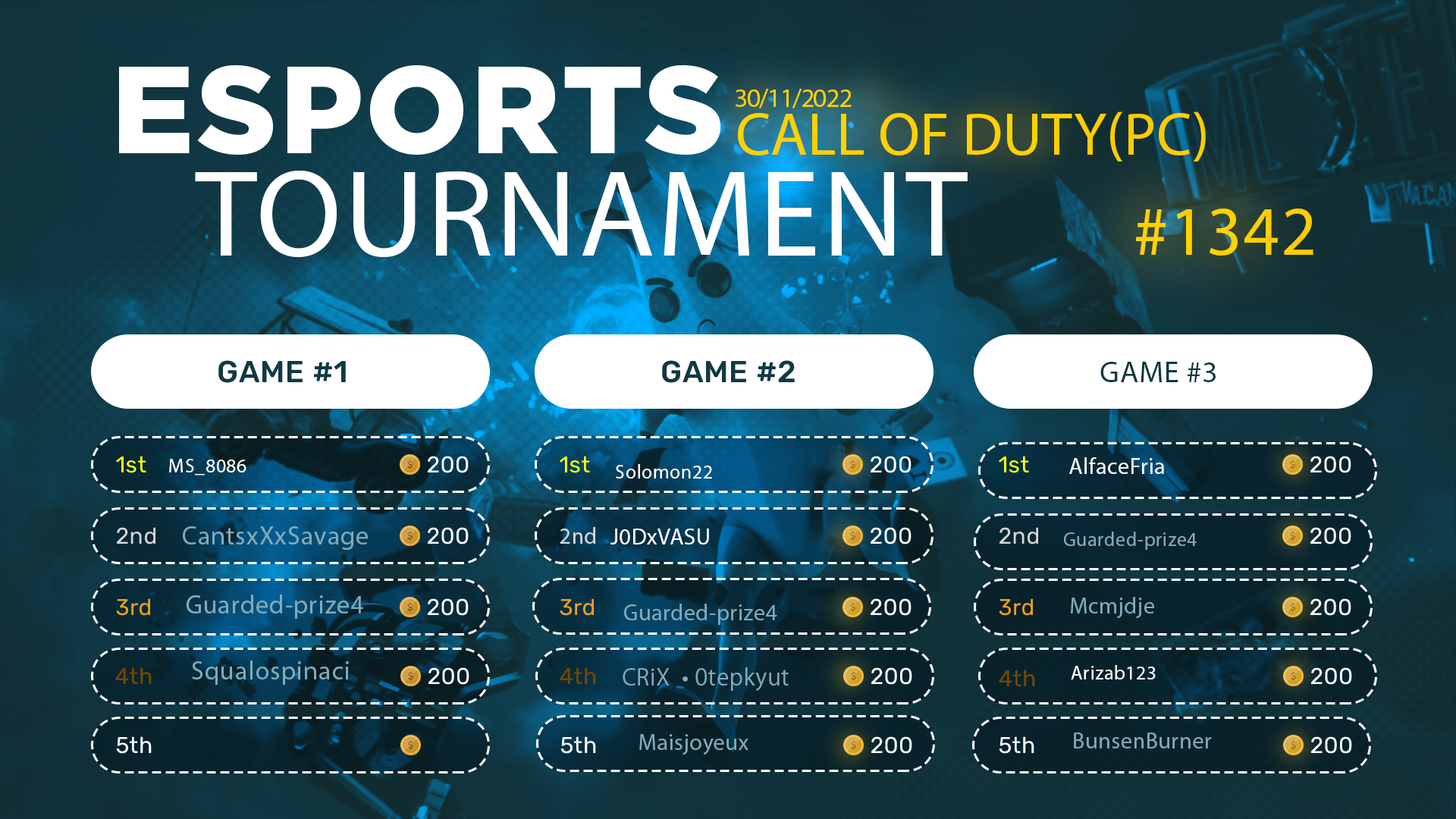 Esports Tournament #1342- COD PC- 30/11/2022