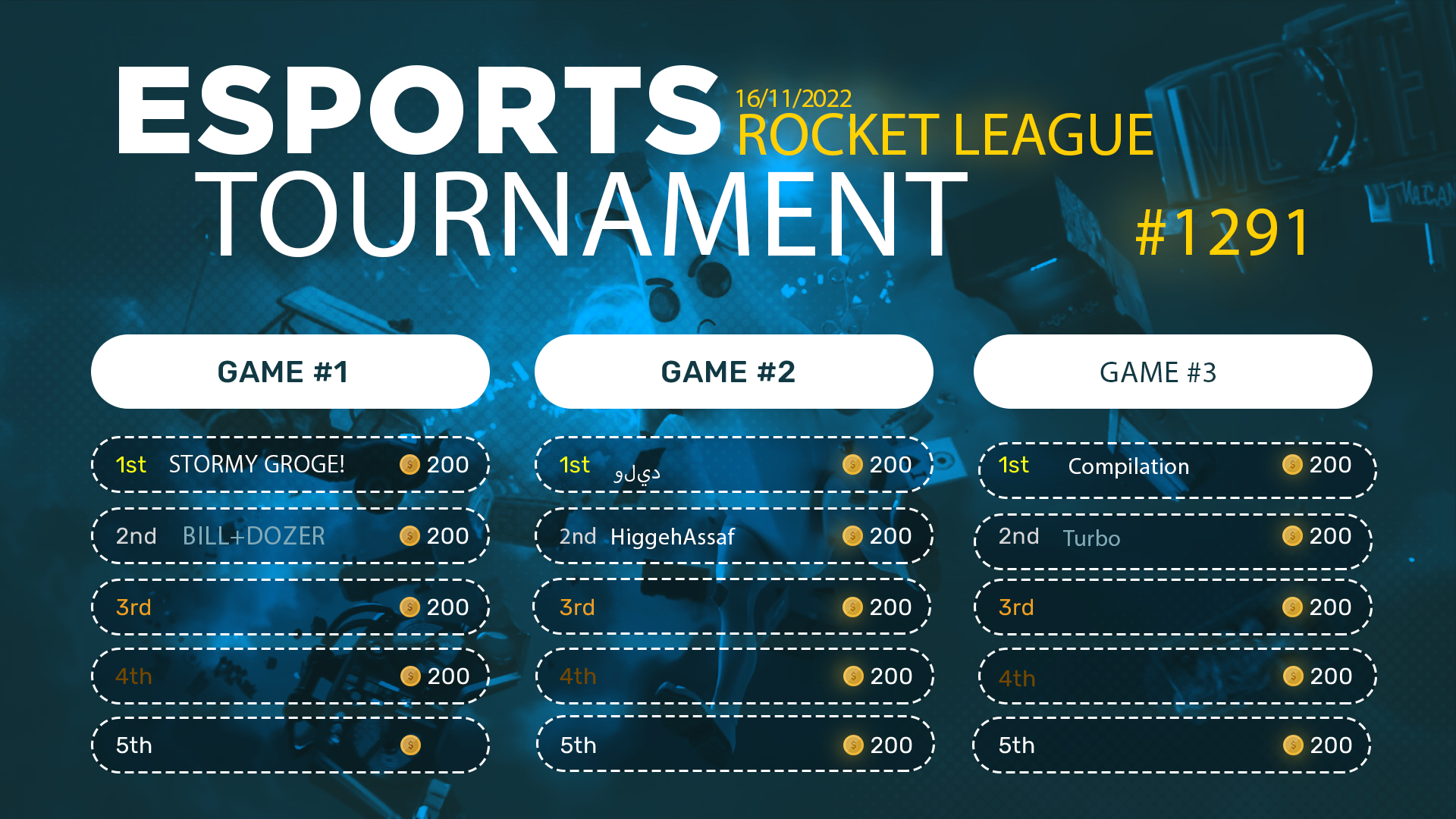 Esports Tournament #1291-ROCKET LEAGUE- 16/11/2022