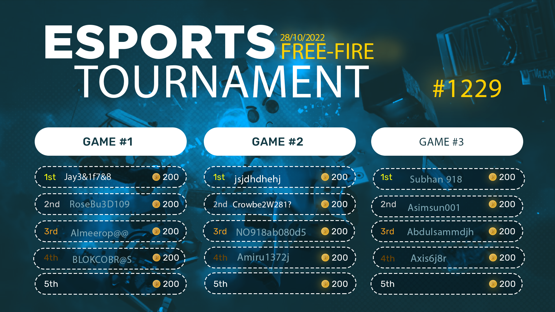 Esports Tournament #1229- FREE-FIRE- 28/10/2022