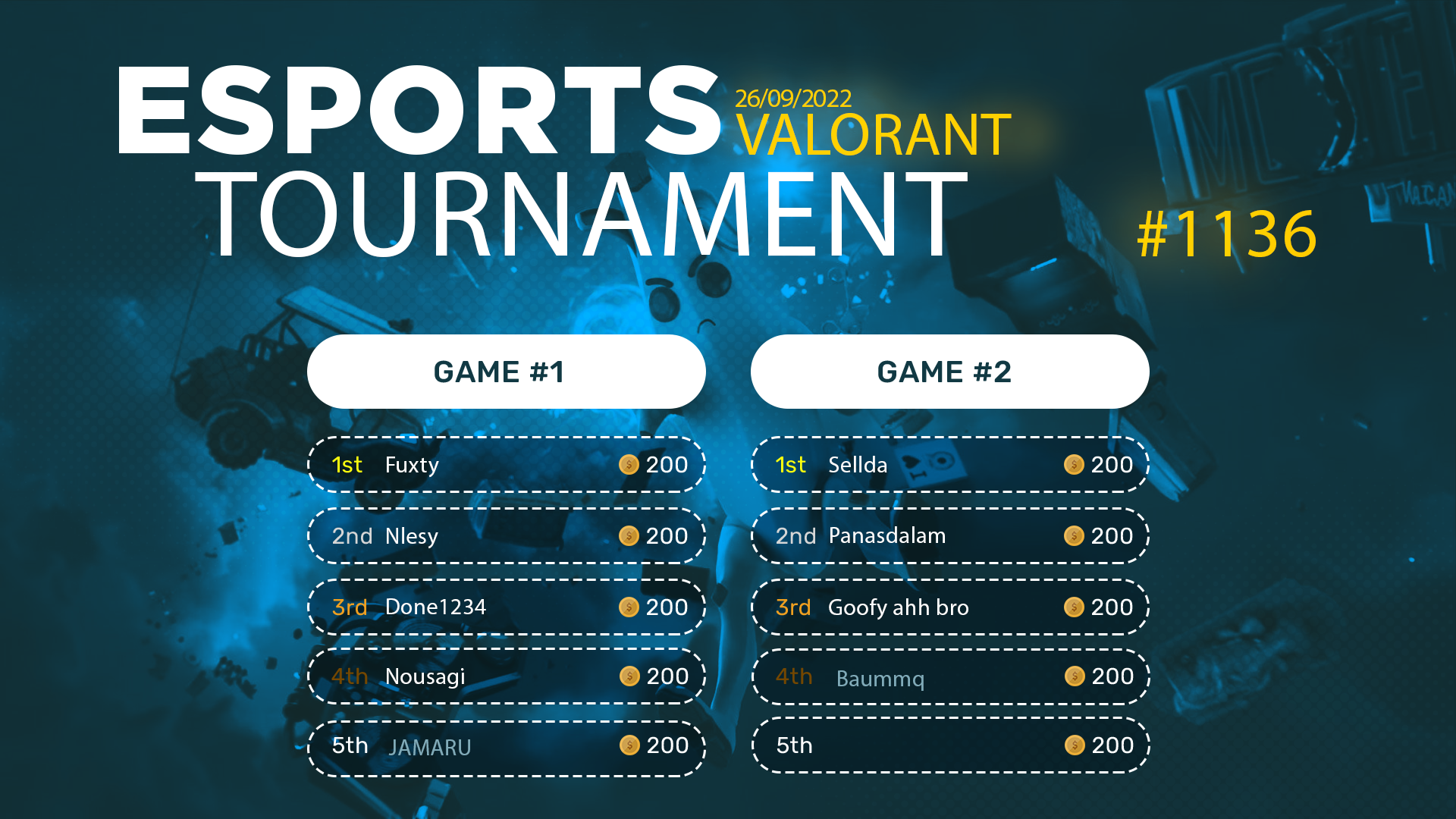 Esports Tournament #1136- VALORANT - 26/09/2022