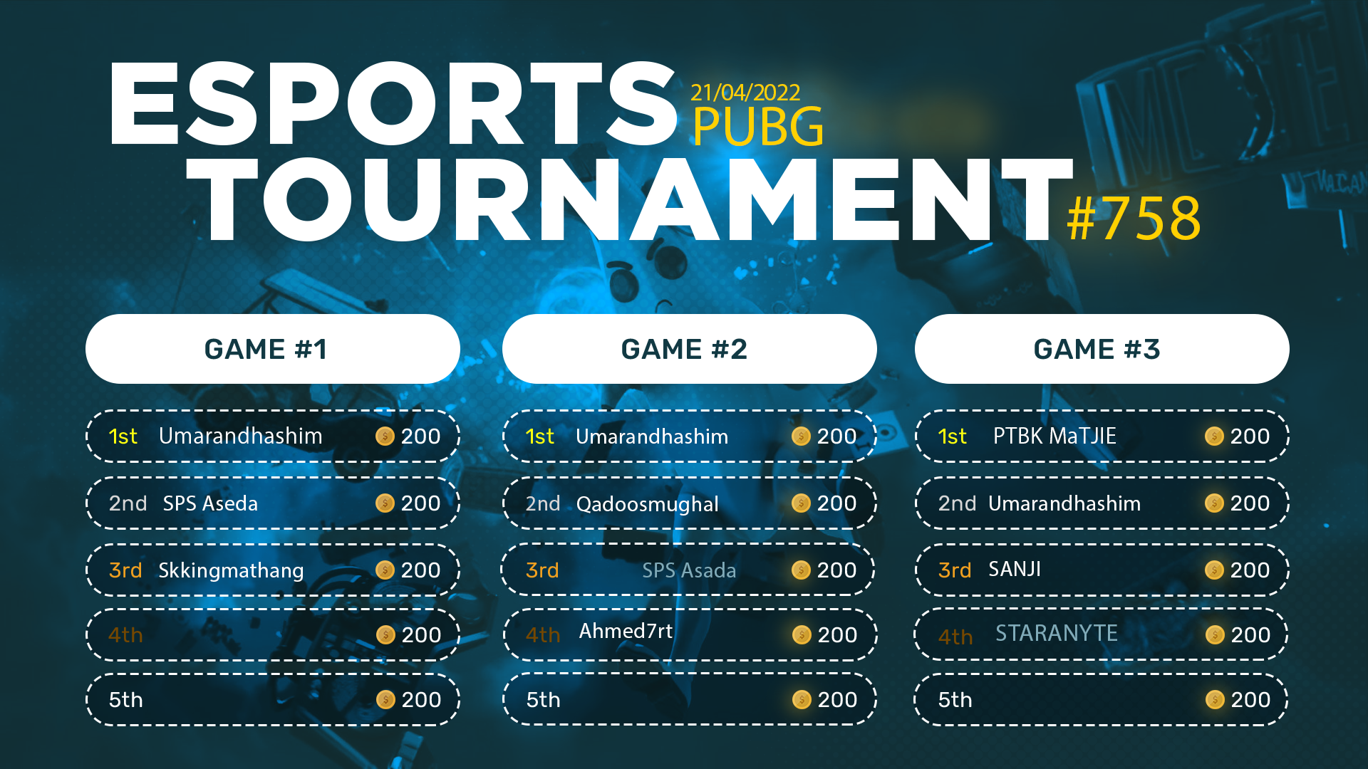 Esports Tournament #758- PUBG Mob- 21/04/2022
