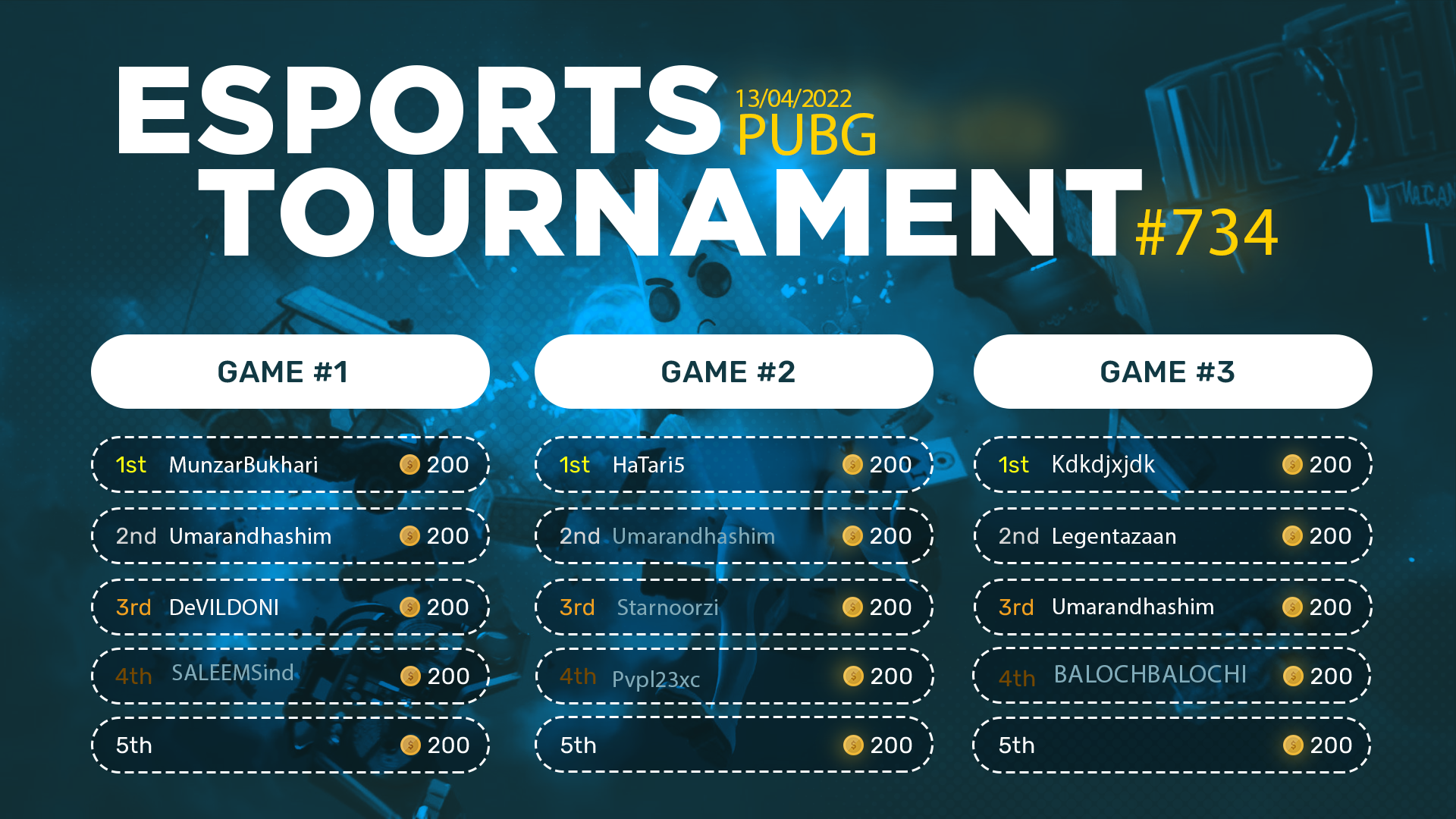 Esports Tournament #734- PUBG Mob- 13/04/2022
