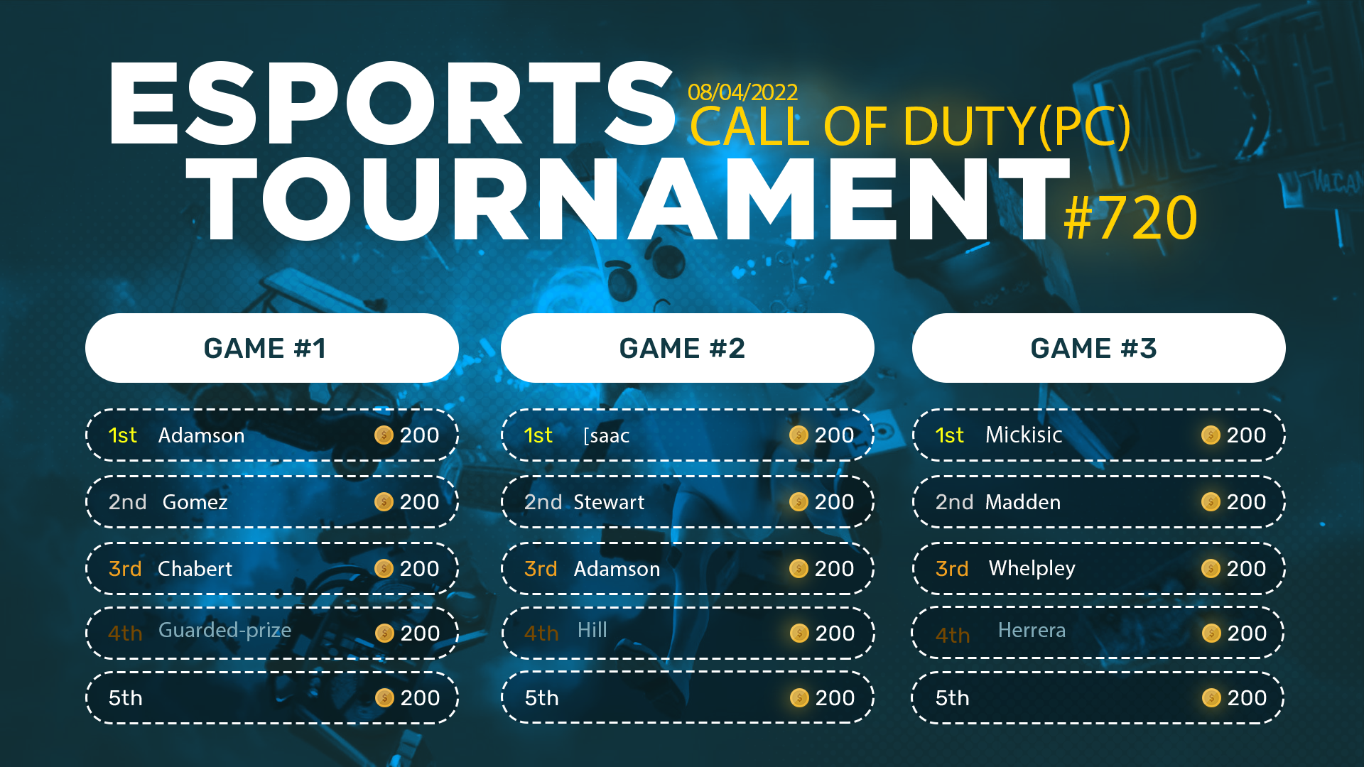 Esports Tournament #720- COD PC - 08/04/2022