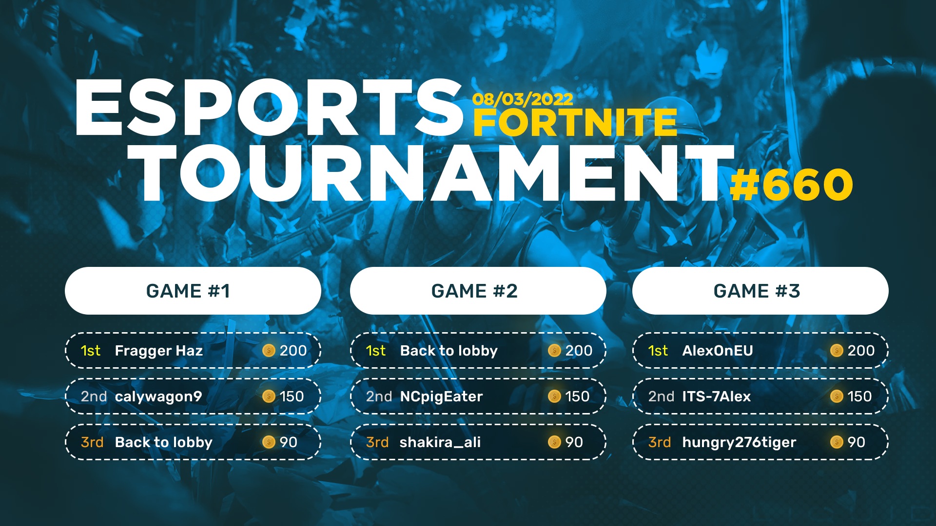 Esports Tournament #660 - Fortnite - 08/03/2022